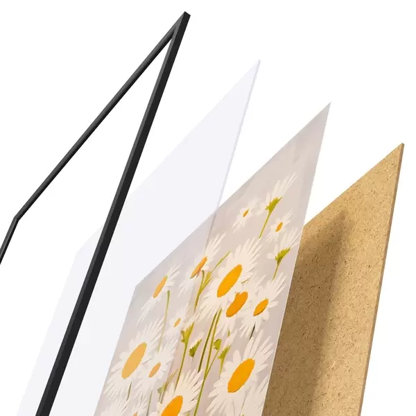 Le poster se compose d'un cadre, d'un plexiglas, d'une image imprimée et d'un support en aggloméré. Le poster peut être immédiatement accroché au mur grâce aux fixations au dos.