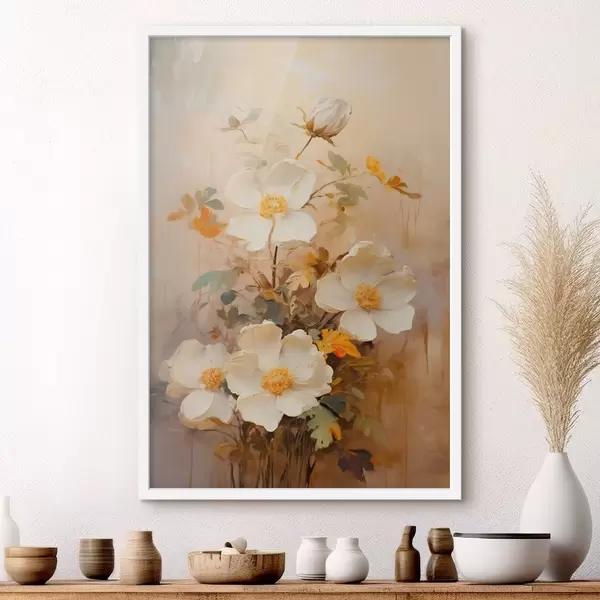 Affiche Fleurs blanches : composition picturale dans des tons pastel f45533