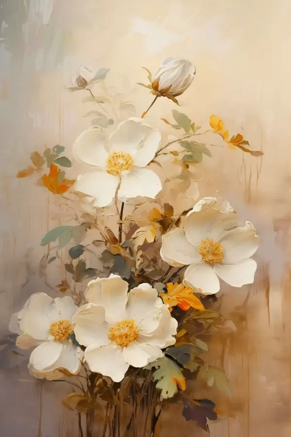 Affiche Fleurs blanches : composition picturale dans des tons pastel f45533