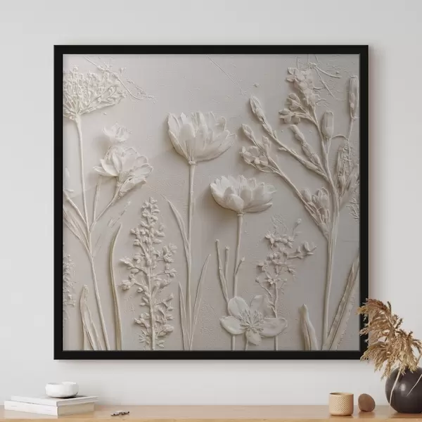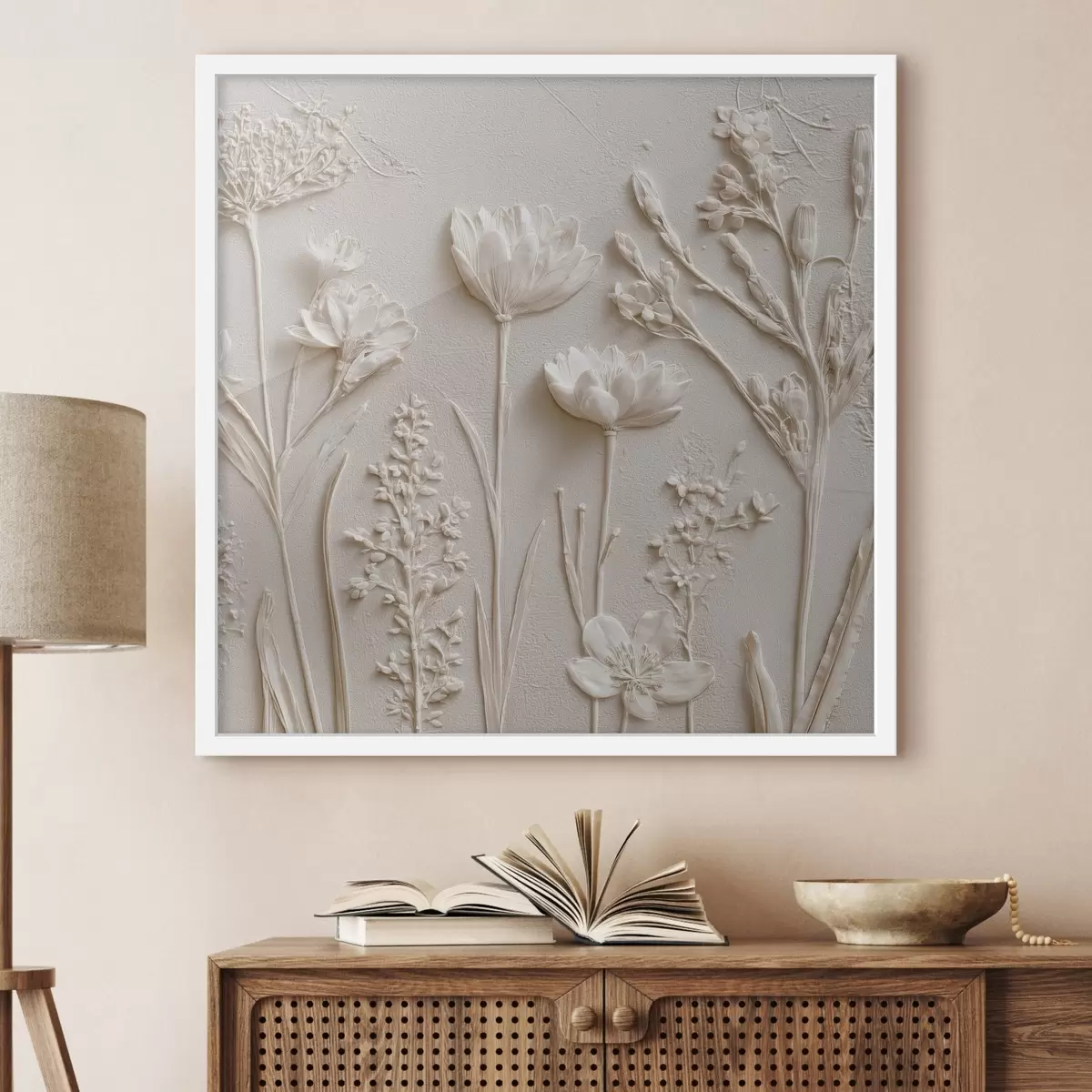 Affiche Composition abstraite : style bas-relief avec des fleurs sur un fond clair f45535