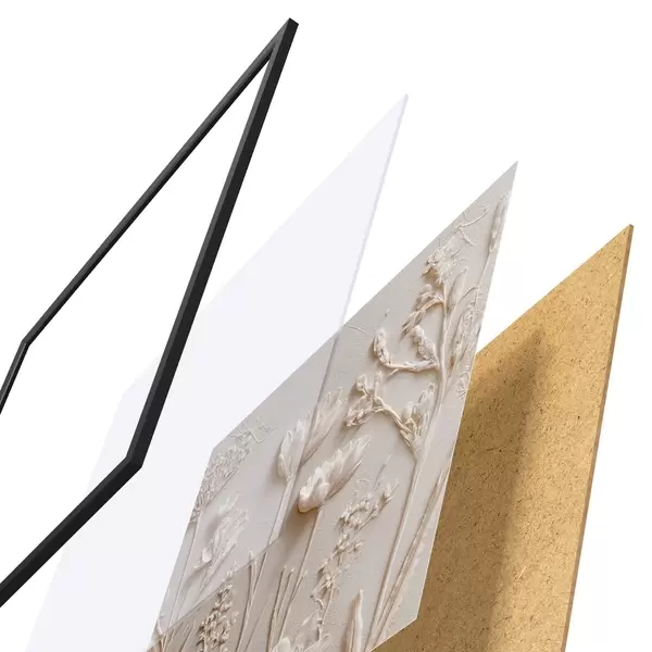 Le poster se compose d'un cadre, d'un plexiglas, d'une image imprimée et d'un support en aggloméré. Le poster peut être immédiatement accroché au mur grâce aux fixations au dos.