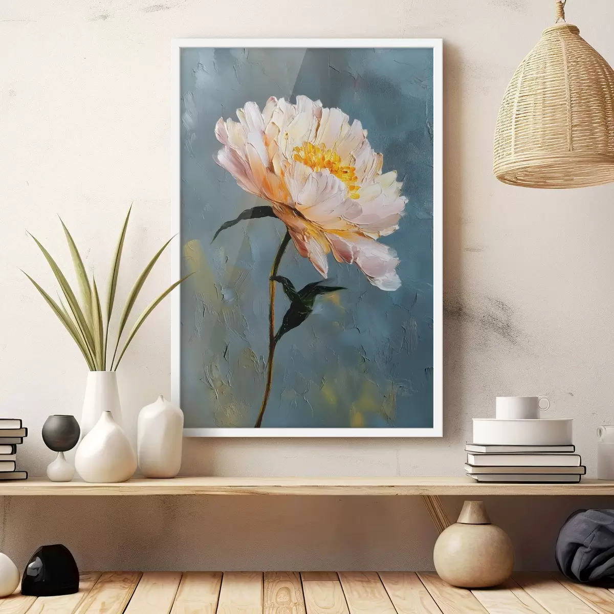 Affiche Fleur abstraite : composition dans les tons bleus et gris f45542