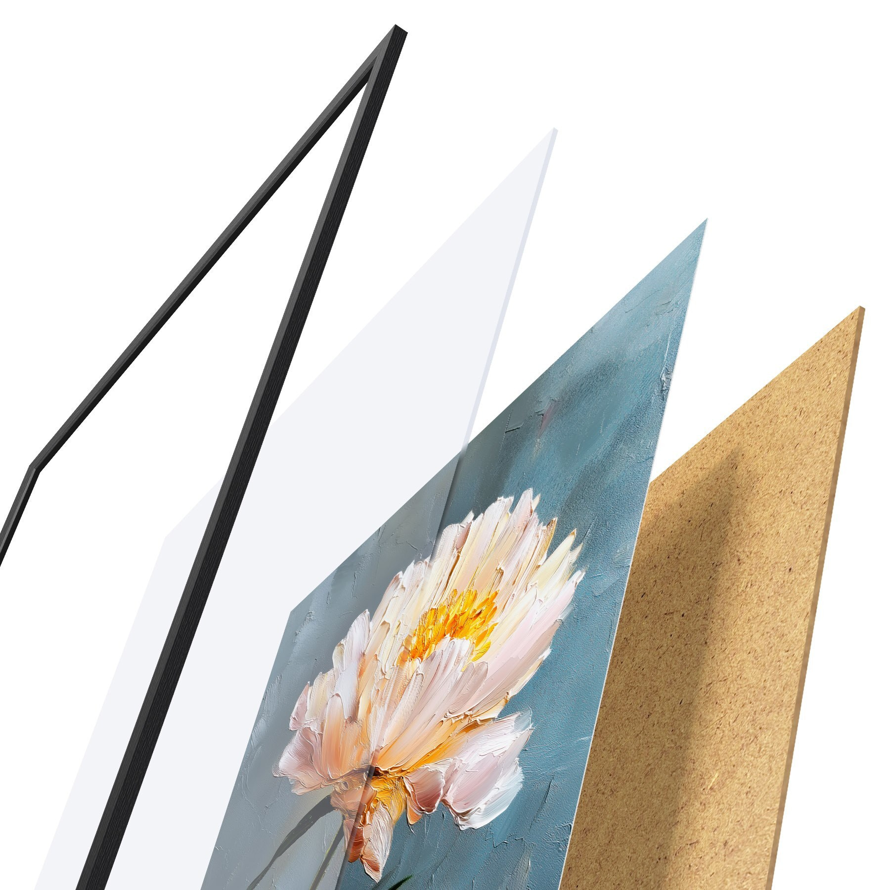 Le poster se compose d'un cadre, d'un plexiglas, d'une image imprimée et d'un support en aggloméré. Le poster peut être immédiatement accroché au mur grâce aux fixations au dos.