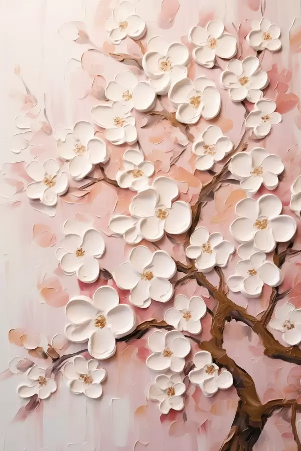 Affiche Branche fleurie : composition en relief dans des tons roses clairs Non f45543