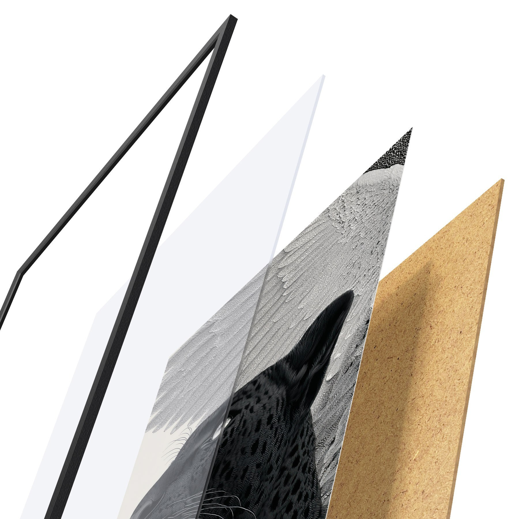 Le poster se compose d'un cadre, d'un plexiglas, d'une image imprimée et d'un support en aggloméré. Le poster peut être immédiatement accroché au mur grâce aux fixations au dos.