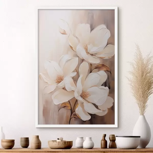 Affiche Fleurs de magnolia blanches sur un fond doux et flou de tons beiges et bruns, composition florale élégante Non f45571