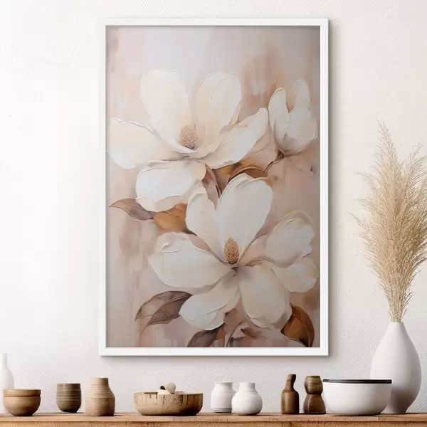 Affiche Fleurs de magnolia blanches sur un fond doux et flou de tons beiges et bruns, style peinture Non f45572