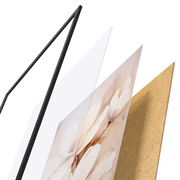 Le poster se compose d'un cadre, d'un plexiglas, d'une image imprimée et d'un support en aggloméré. Le poster peut être immédiatement accroché au mur grâce aux fixations au dos.
