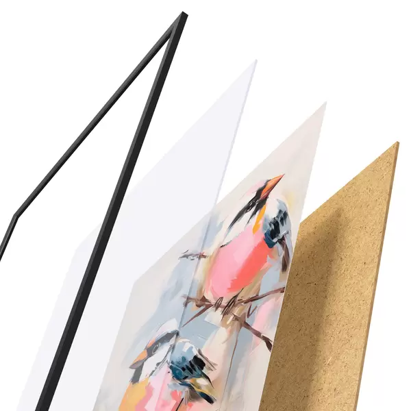 Le poster se compose d'un cadre, d'un plexiglas, d'une image imprimée et d'un support en aggloméré. Le poster peut être immédiatement accroché au mur grâce aux fixations au dos.
