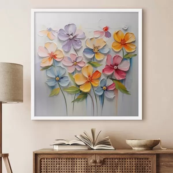 Affiche Nature morte florale : fleurs multicolores en technique d'empâtement f45598