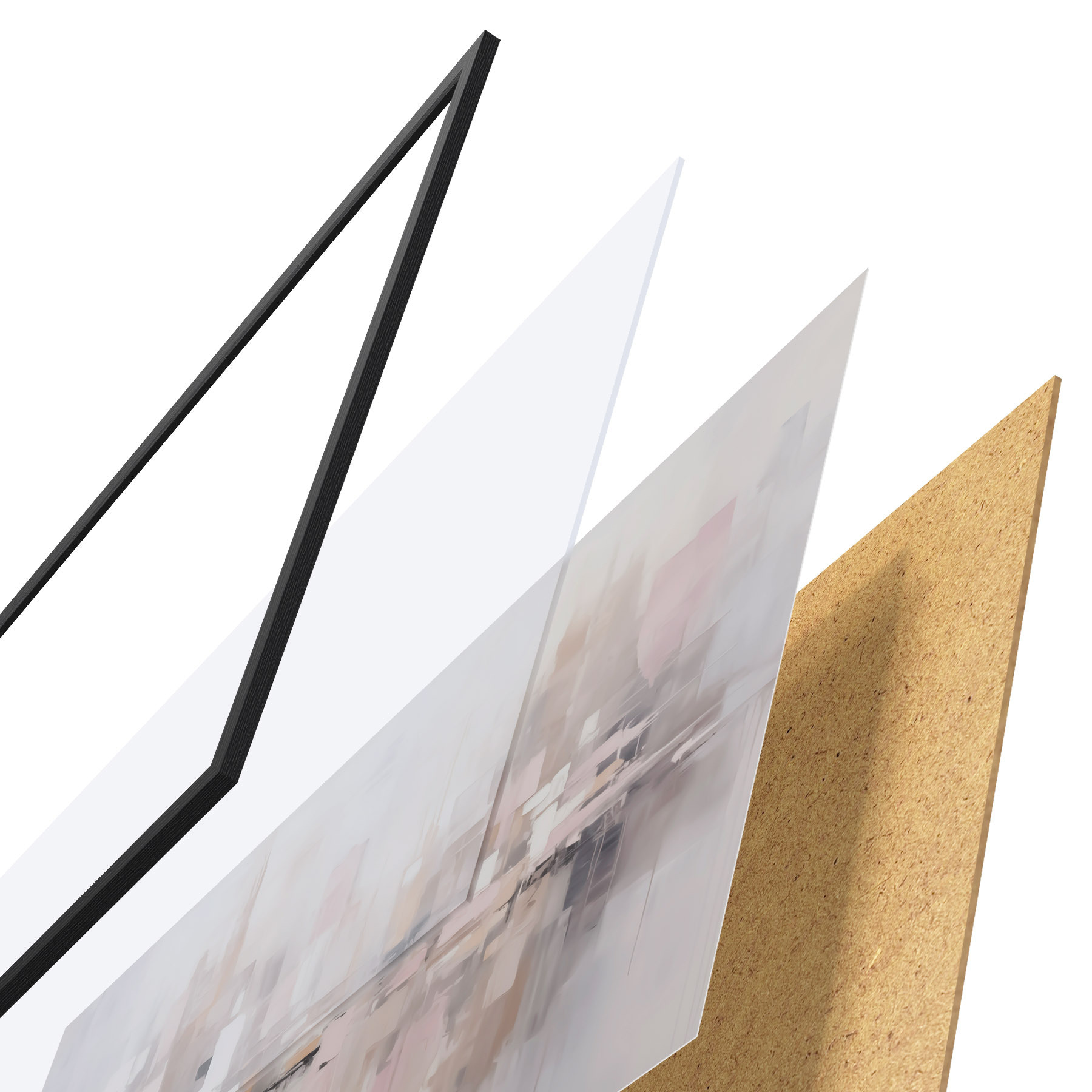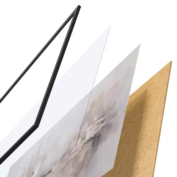 Le poster se compose d'un cadre, d'un plexiglas, d'une image imprimée et d'un support en aggloméré. Le poster peut être immédiatement accroché au mur grâce aux fixations au dos.