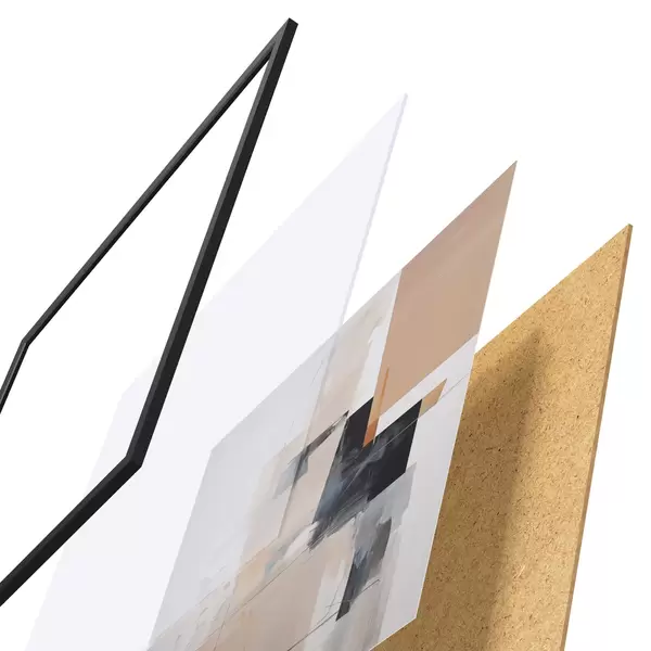 Le poster se compose d'un cadre, d'un plexiglas, d'une image imprimée et d'un support en aggloméré. Le poster peut être immédiatement accroché au mur grâce aux fixations au dos.