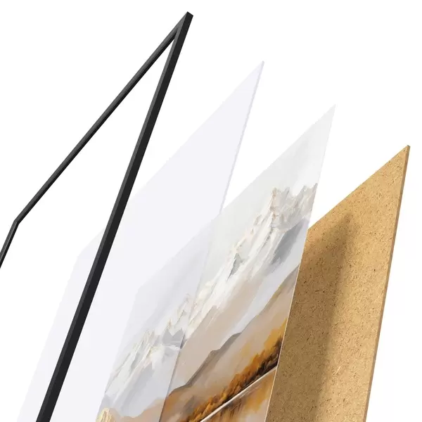 Le poster se compose d'un cadre, d'un plexiglas, d'une image imprimée et d'un support en aggloméré. Le poster peut être immédiatement accroché au mur grâce aux fixations au dos.