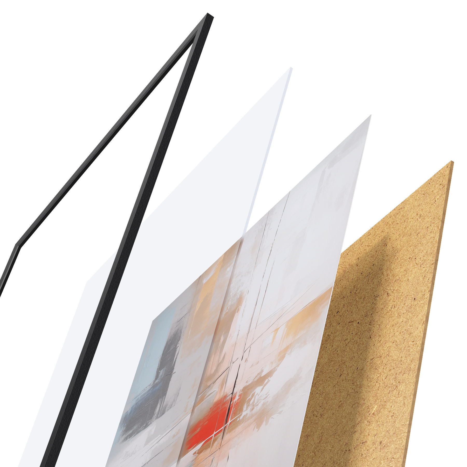Le poster se compose d'un cadre, d'un plexiglas, d'une image imprimée et d'un support en aggloméré. Le poster peut être immédiatement accroché au mur grâce aux fixations au dos.