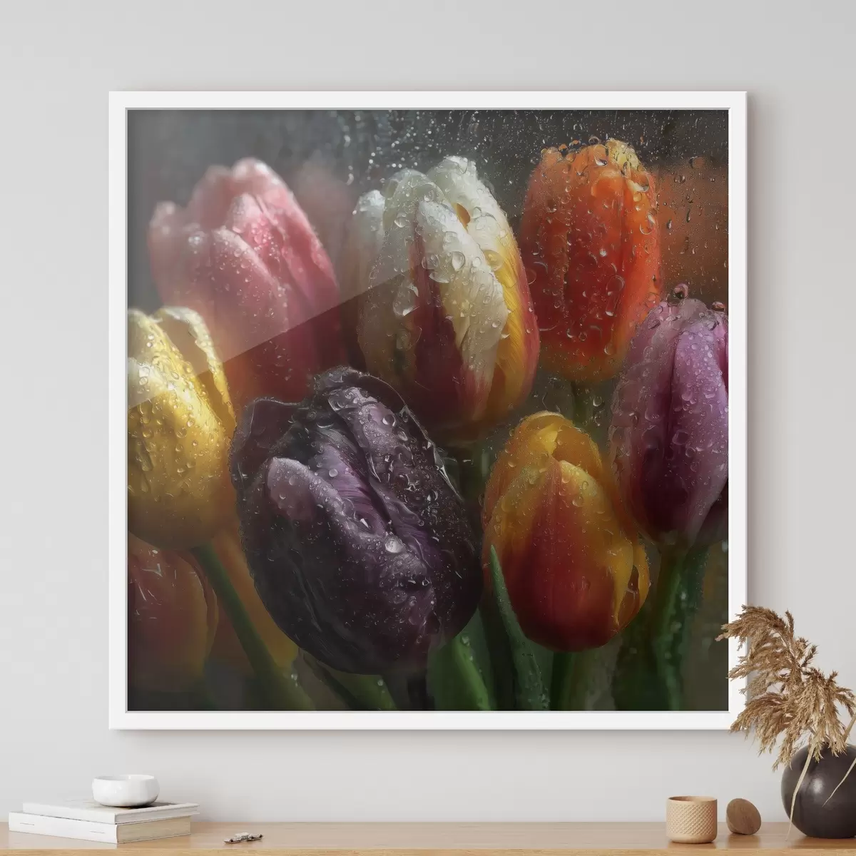 Affiche Tulipes sous la pluie : couleurs vives Non f45642