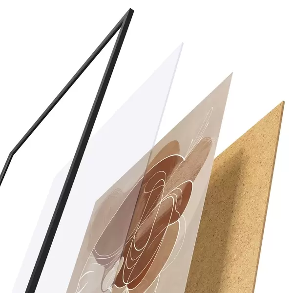 Le poster se compose d'un cadre, d'un plexiglas, d'une image imprimée et d'un support en aggloméré. Le poster peut être immédiatement accroché au mur grâce aux fixations au dos.