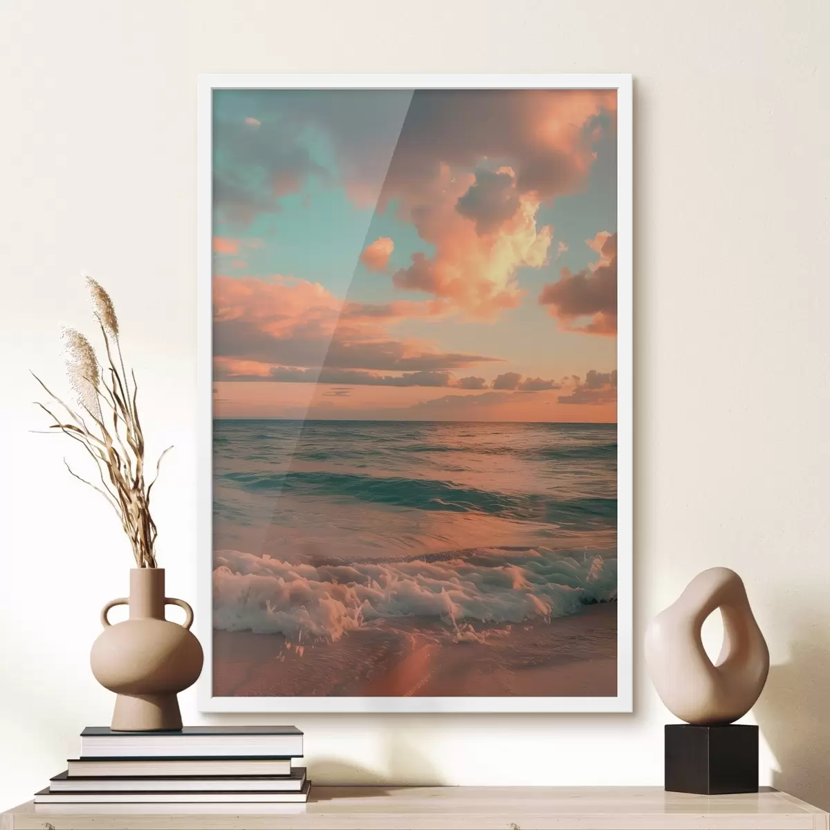 Le poster se compose d'un cadre, d'un plexiglas, d'une image imprimée et d'un support en aggloméré. Le poster peut être immédiatement accroché au mur grâce aux fixations au dos.