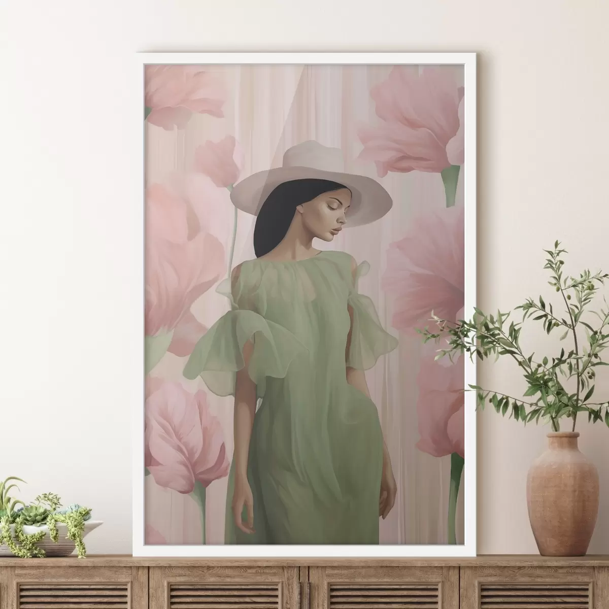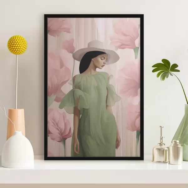 Affiche Fille au chapeau parmi les fleurs Non f45678