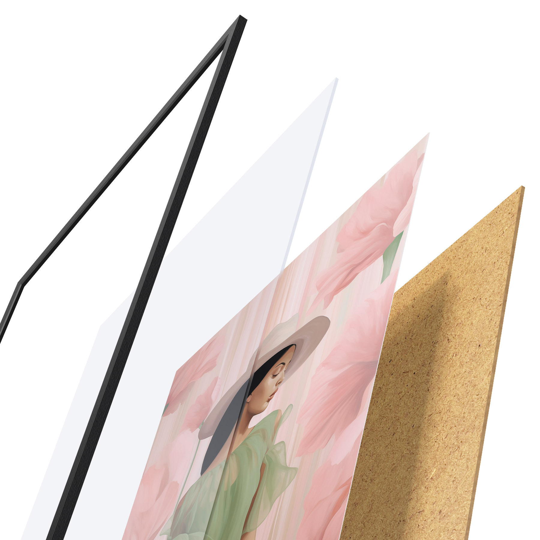 Le poster se compose d'un cadre, d'un plexiglas, d'une image imprimée et d'un support en aggloméré. Le poster peut être immédiatement accroché au mur grâce aux fixations au dos.