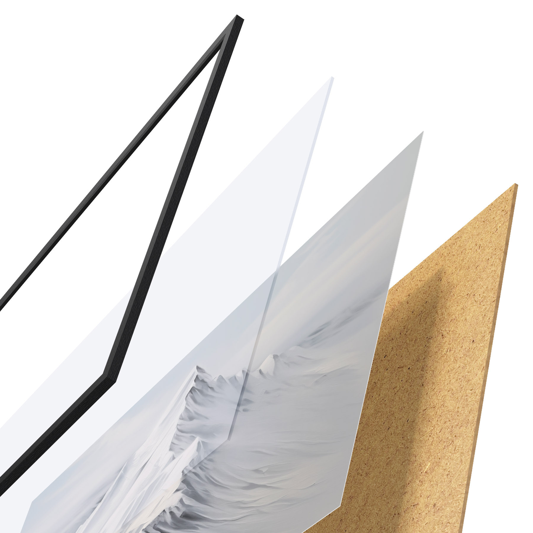 Le poster se compose d'un cadre, d'un plexiglas, d'une image imprimée et d'un support en aggloméré. Le poster peut être immédiatement accroché au mur grâce aux fixations au dos.