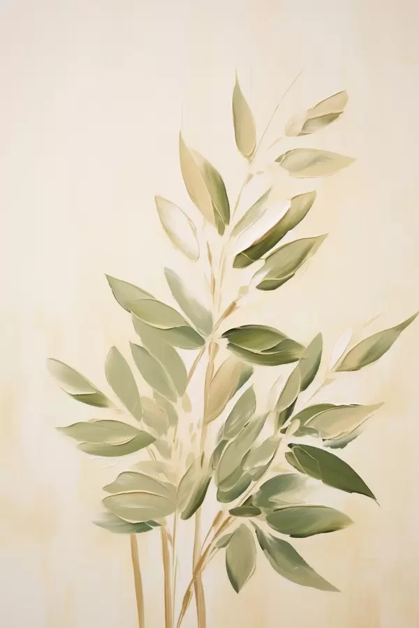Affiche Branche avec des feuilles vertes sur un fond beige clair Non f45689
