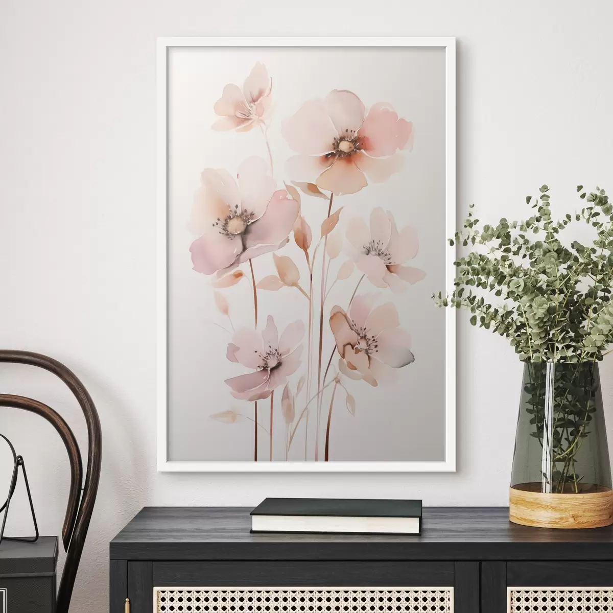 Affiche Fleurs roses aquarelles sur tiges fines f45701