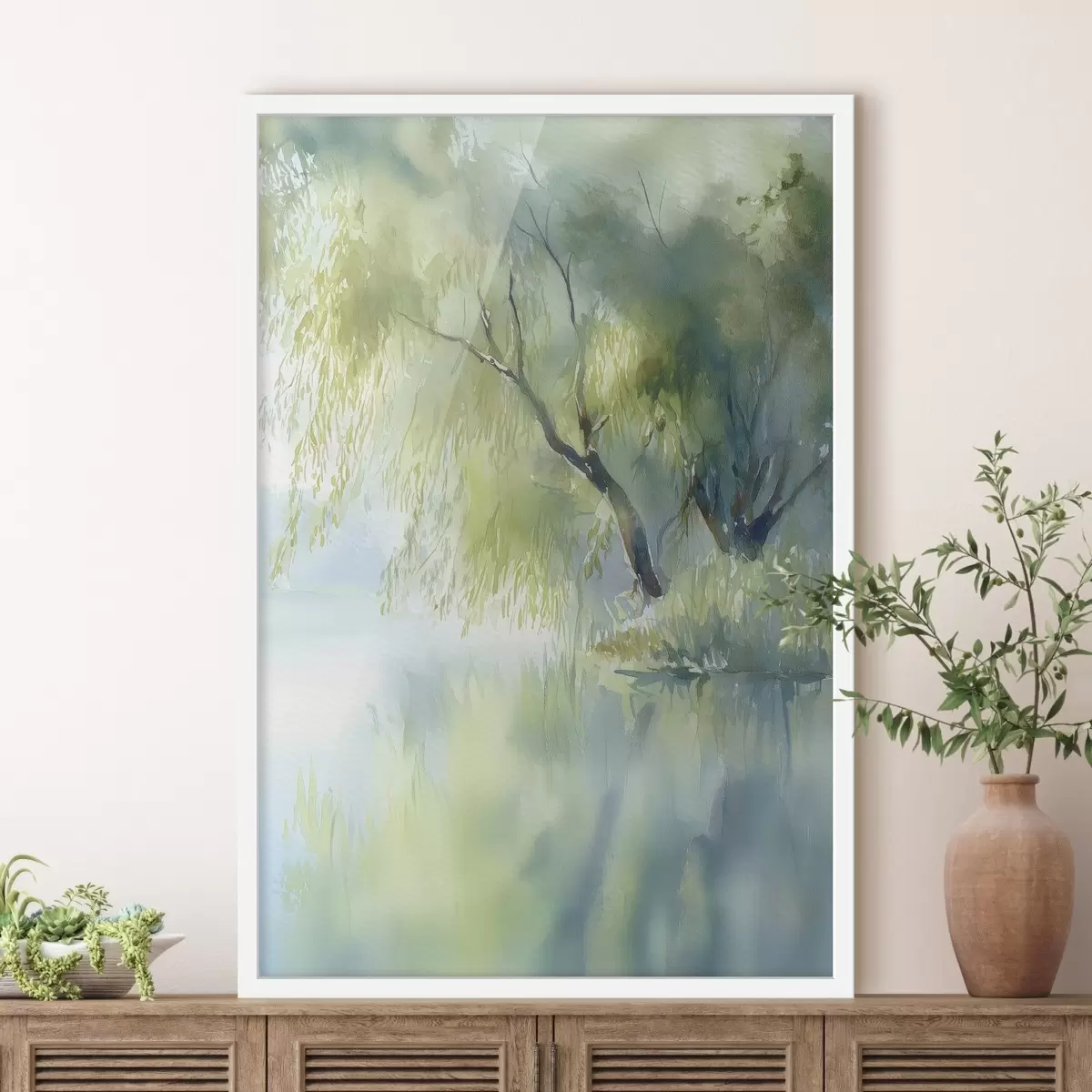 Affiche saule au bord du lac, style aquarelle Non f45715