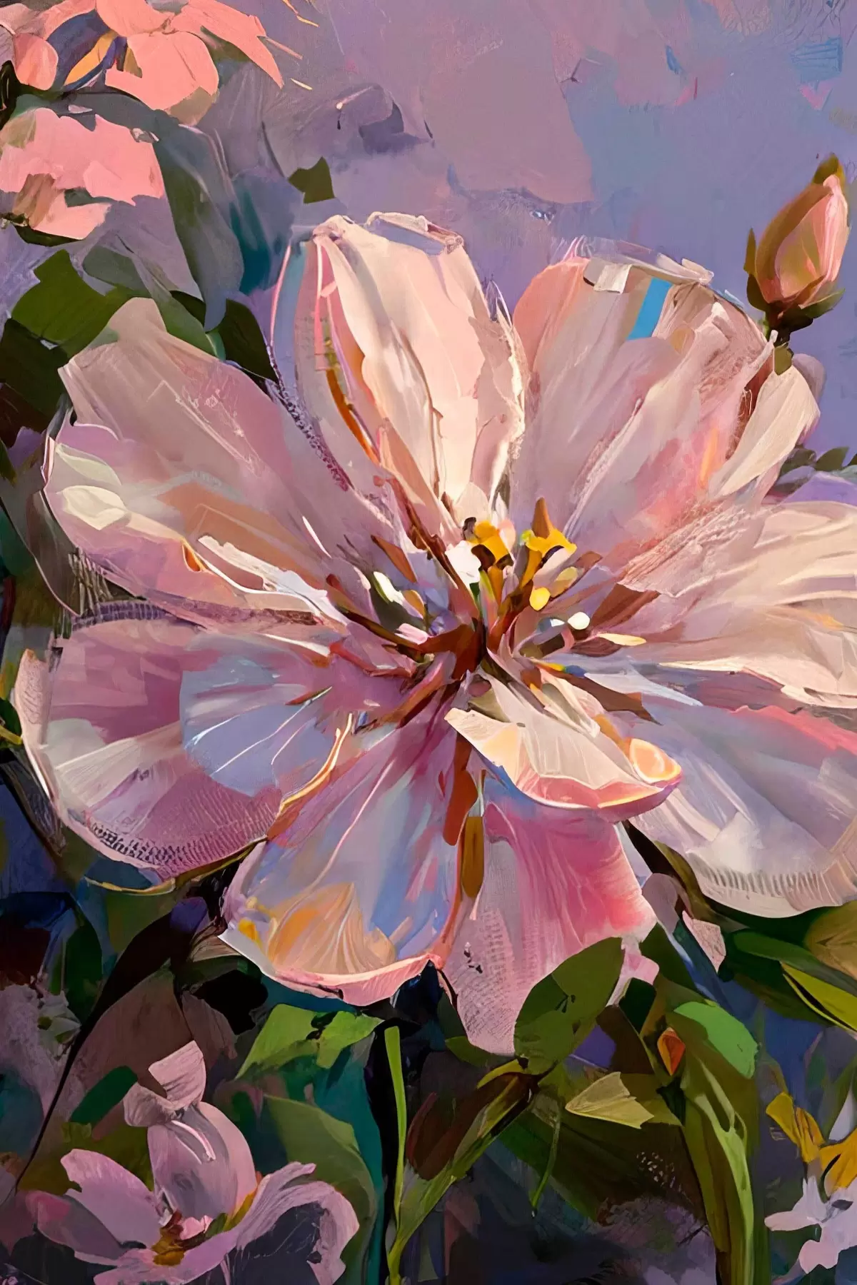 Affiche fleurs roses dans le style de la peinture à l'huile Non f45723