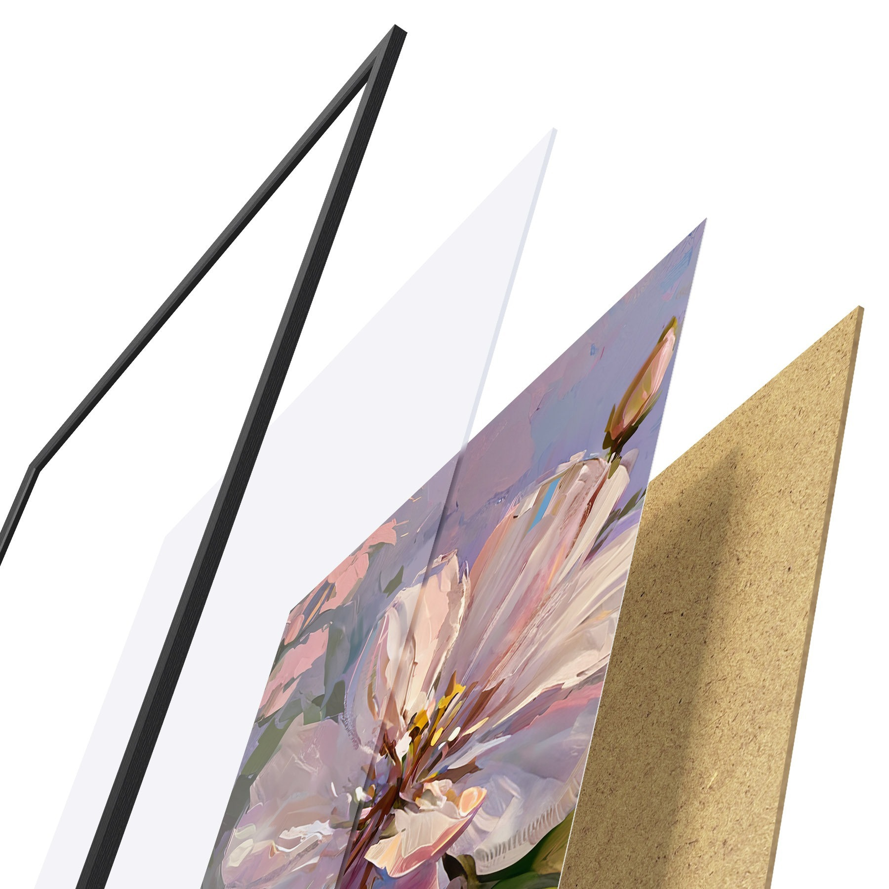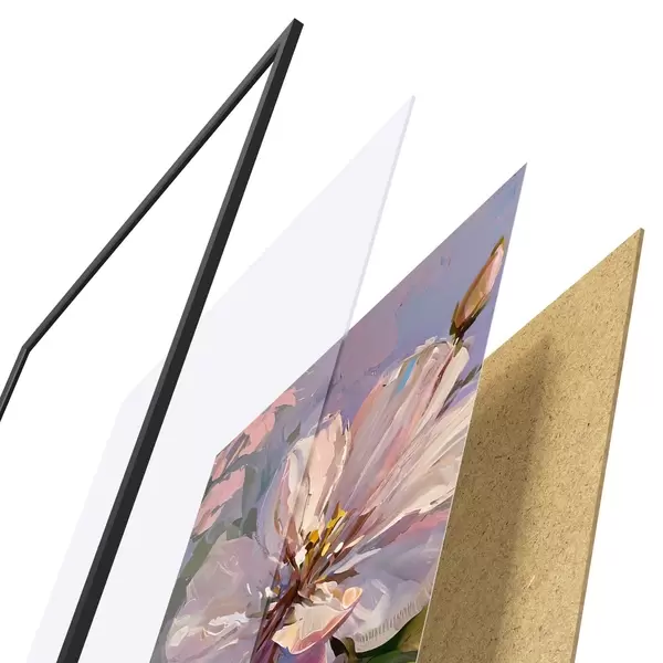 Le poster se compose d'un cadre, d'un plexiglas, d'une image imprimée et d'un support en aggloméré. Le poster peut être immédiatement accroché au mur grâce aux fixations au dos.