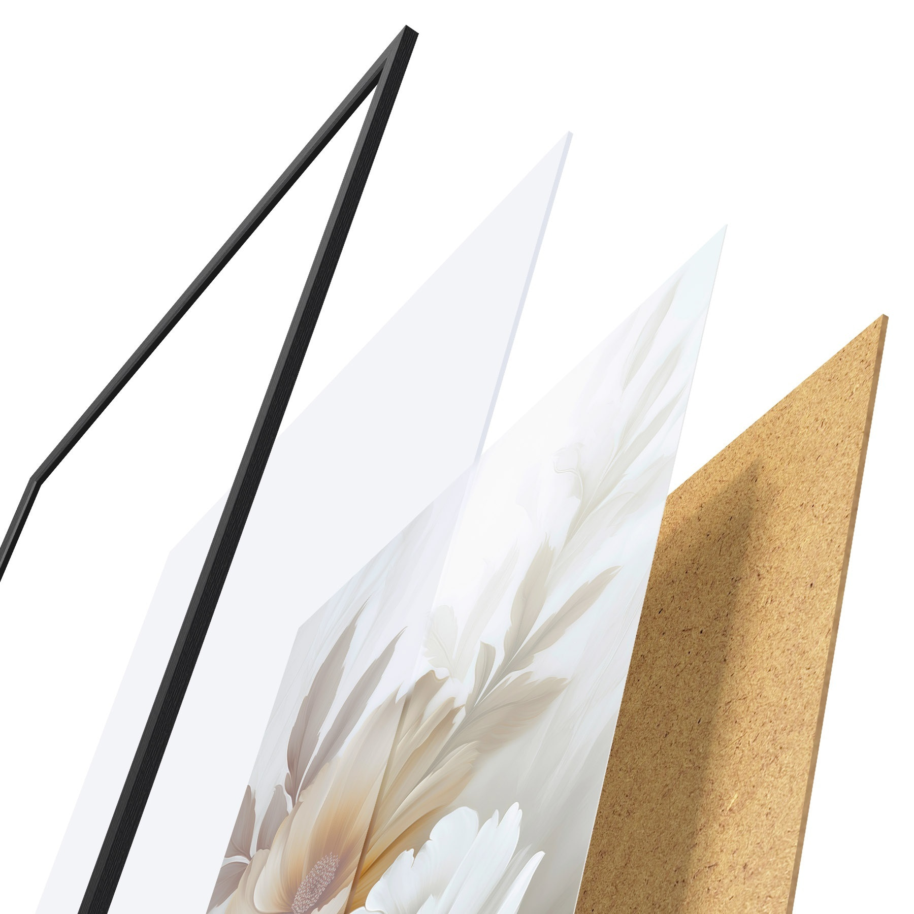 Le poster se compose d'un cadre, d'un plexiglas, d'une image imprimée et d'un support en aggloméré. Le poster peut être immédiatement accroché au mur grâce aux fixations au dos.
