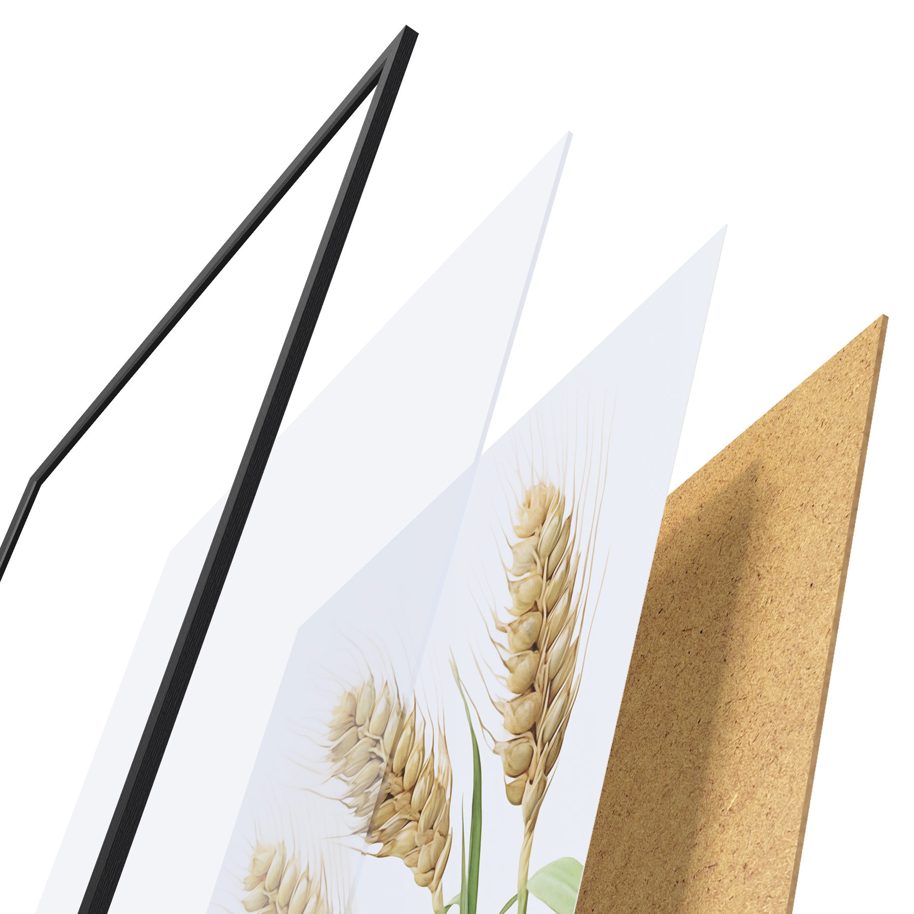 Le poster se compose d'un cadre, d'un plexiglas, d'une image imprimée et d'un support en aggloméré. Le poster peut être immédiatement accroché au mur grâce aux fixations au dos.