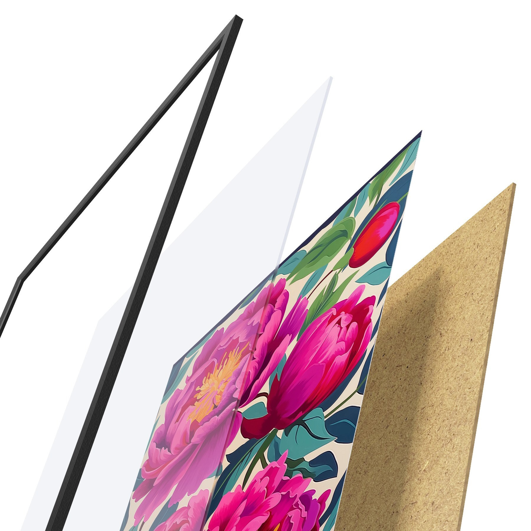 Le poster se compose d'un cadre, d'un plexiglas, d'une image imprimée et d'un support en aggloméré. Le poster peut être immédiatement accroché au mur grâce aux fixations au dos.