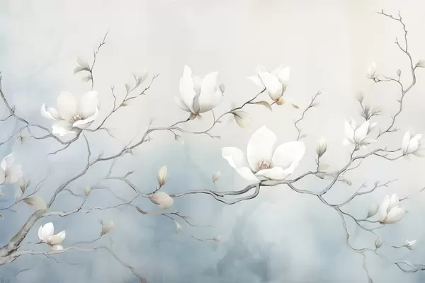 Affiche Branches de magnolia avec des fleurs blanches sur un fond délicat Non f45806