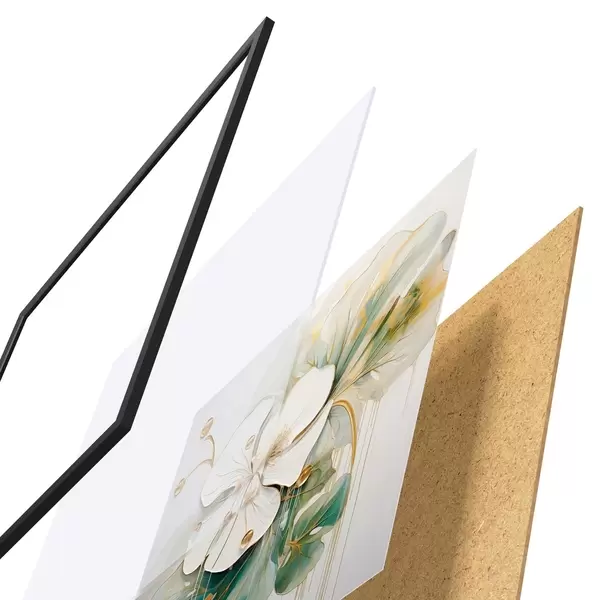 Le poster se compose d'un cadre, d'un plexiglas, d'une image imprimée et d'un support en aggloméré. Le poster peut être immédiatement accroché au mur grâce aux fixations au dos.