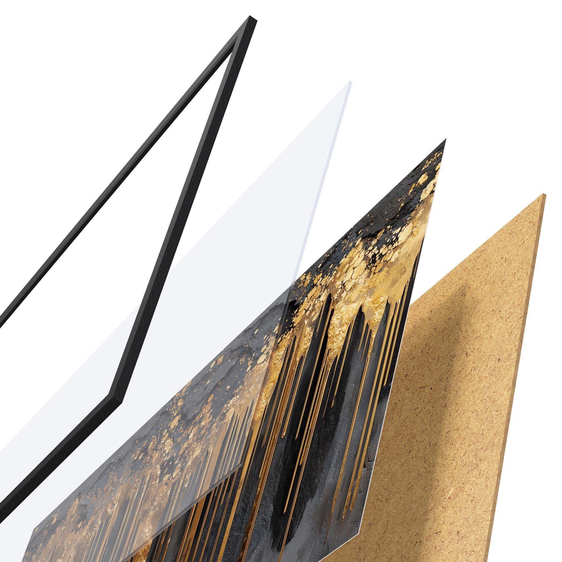 Le poster se compose d'un cadre, d'un plexiglas, d'une image imprimée et d'un support en aggloméré. Le poster peut être immédiatement accroché au mur grâce aux fixations au dos.