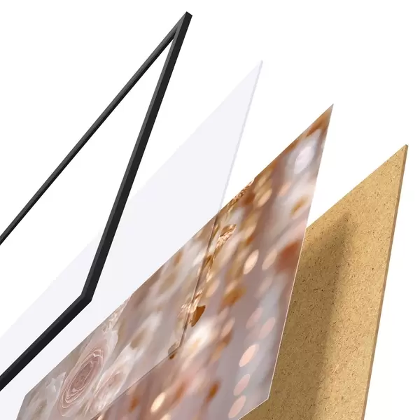 Le poster se compose d'un cadre, d'un plexiglas, d'une image imprimée et d'un support en aggloméré. Le poster peut être immédiatement accroché au mur grâce aux fixations au dos.