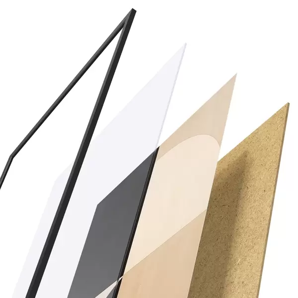 Le poster se compose d'un cadre, d'un plexiglas, d'une image imprimée et d'un support en aggloméré. Le poster peut être immédiatement accroché au mur grâce aux fixations au dos.