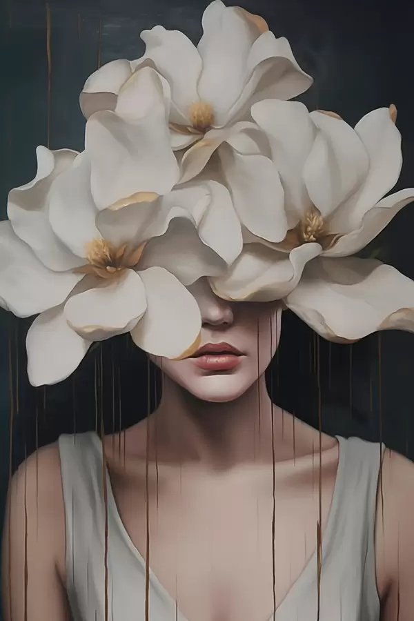 Affiche Femme avec des fleurs blanches sur la tête Non f45843