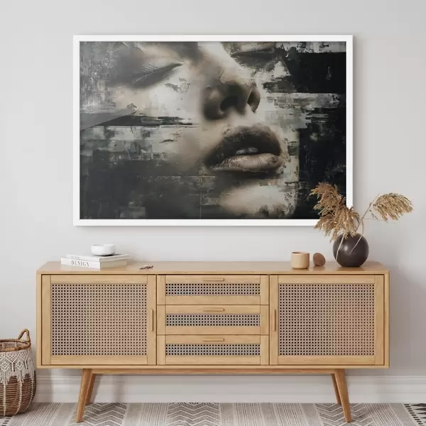 Affiche Portrait féminin abstrait avec effet glitch et textures f45873