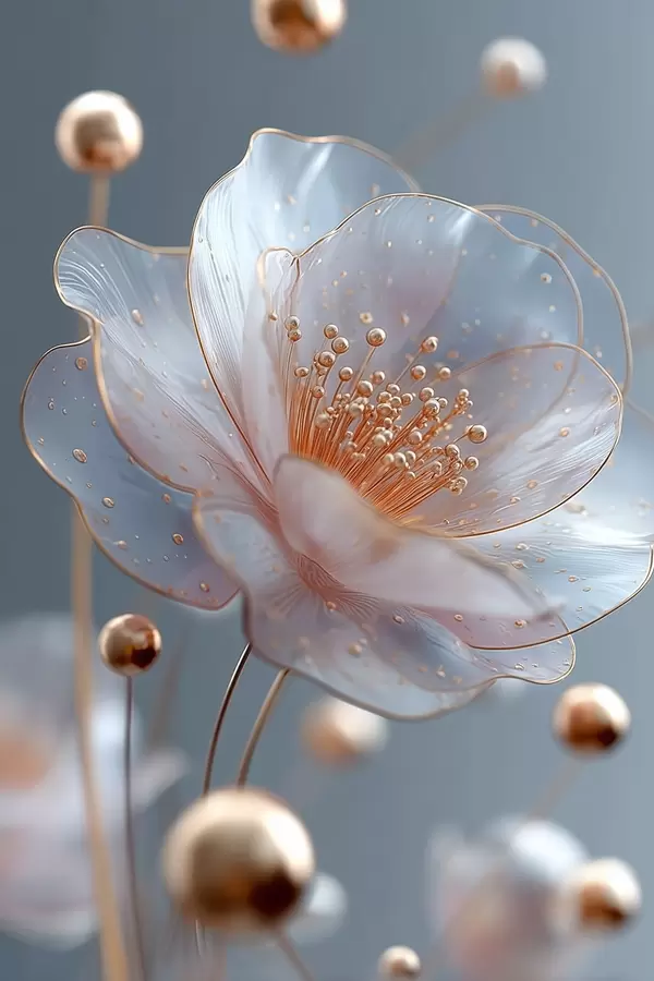 Affiche Fleur translucide avec des étamines cuivrées sur fond bleu Non f45880