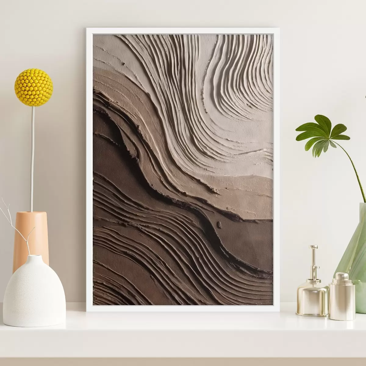 Affiche Couches en relief chocolat-beige, pâte texturée f45894