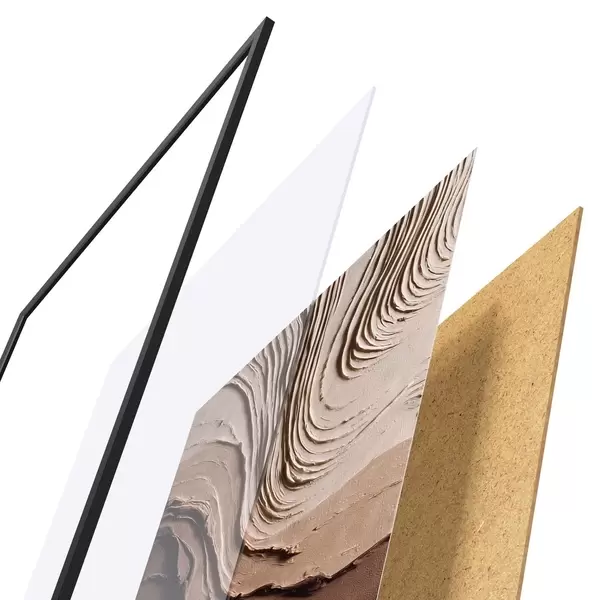 Le poster se compose d'un cadre, d'un plexiglas, d'une image imprimée et d'un support en aggloméré. Le poster peut être immédiatement accroché au mur grâce aux fixations au dos.
