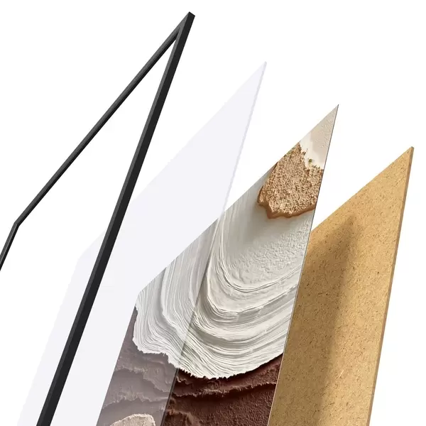 Le poster se compose d'un cadre, d'un plexiglas, d'une image imprimée et d'un support en aggloméré. Le poster peut être immédiatement accroché au mur grâce aux fixations au dos.