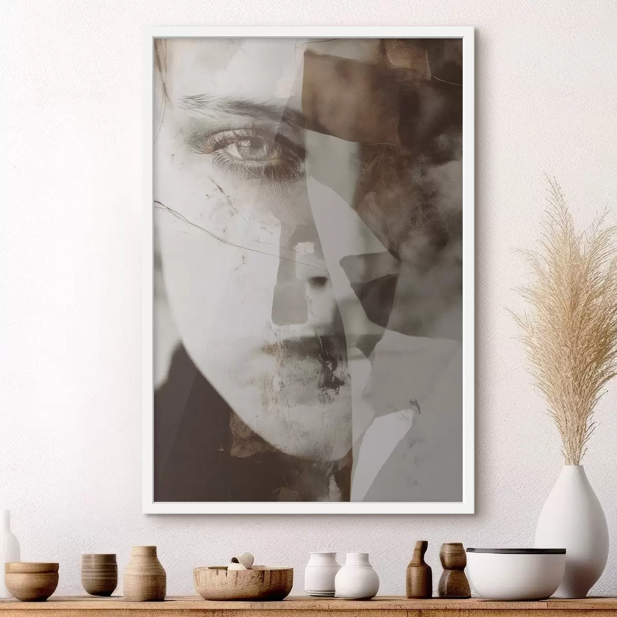Affiche Portrait abstrait en sépia, textures et taches Non f45897