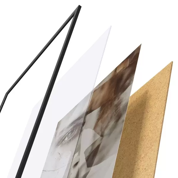 Le poster se compose d'un cadre, d'un plexiglas, d'une image imprimée et d'un support en aggloméré. Le poster peut être immédiatement accroché au mur grâce aux fixations au dos.