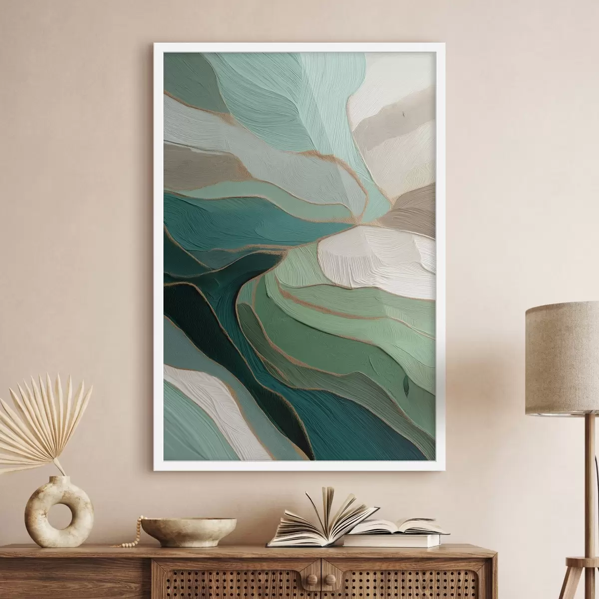 Affiche Abstraction vert sauge avec un contour jaune Non f45901