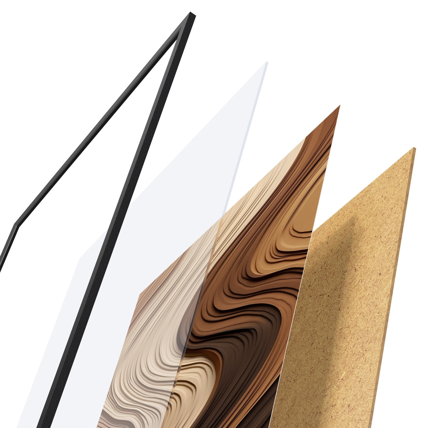 Le poster se compose d'un cadre, d'un plexiglas, d'une image imprimée et d'un support en aggloméré. Le poster peut être immédiatement accroché au mur grâce aux fixations au dos.