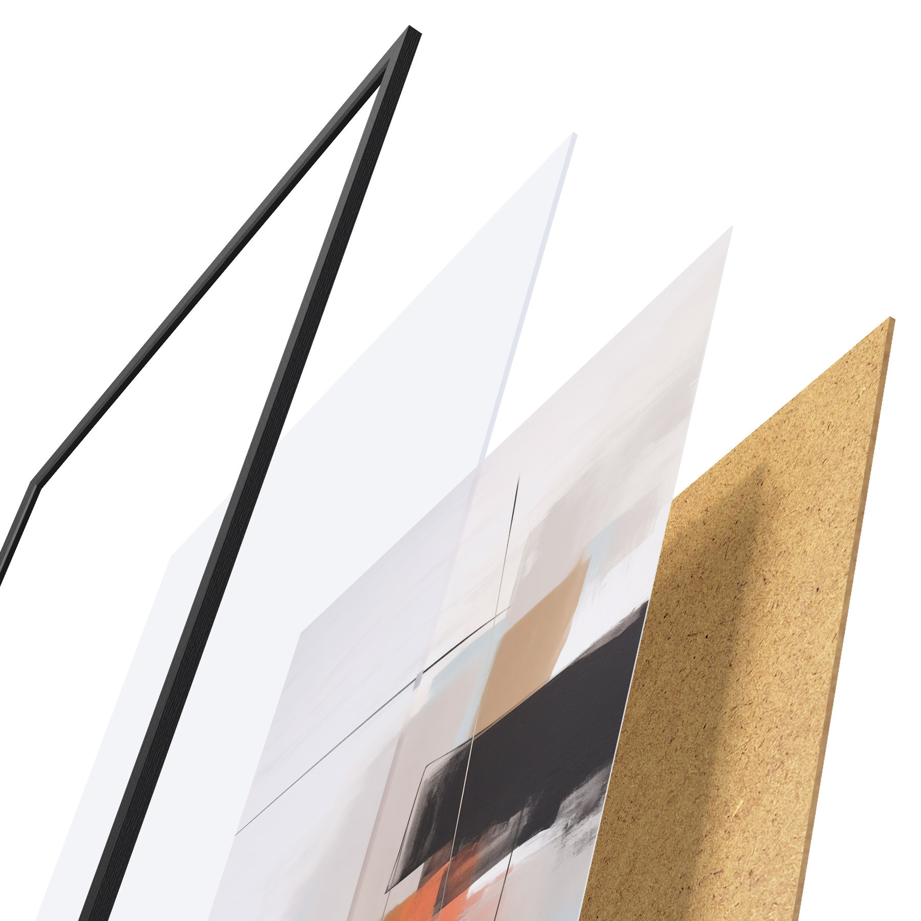 Le poster se compose d'un cadre, d'un plexiglas, d'une image imprimée et d'un support en aggloméré. Le poster peut être immédiatement accroché au mur grâce aux fixations au dos.