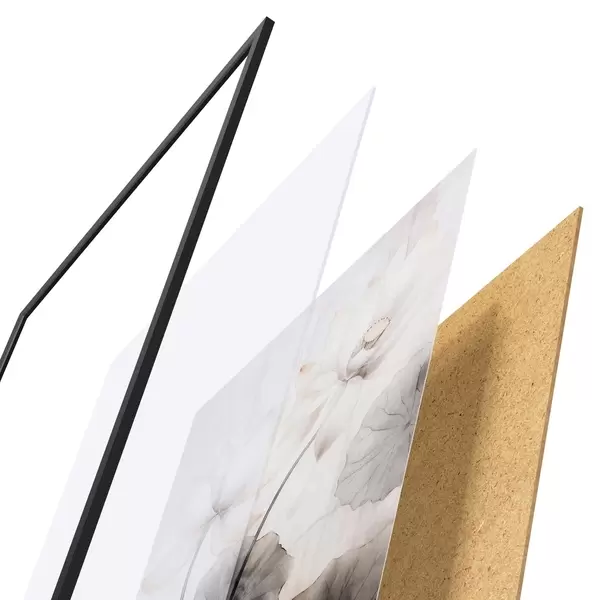 Le poster se compose d'un cadre, d'un plexiglas, d'une image imprimée et d'un support en aggloméré. Le poster peut être immédiatement accroché au mur grâce aux fixations au dos.