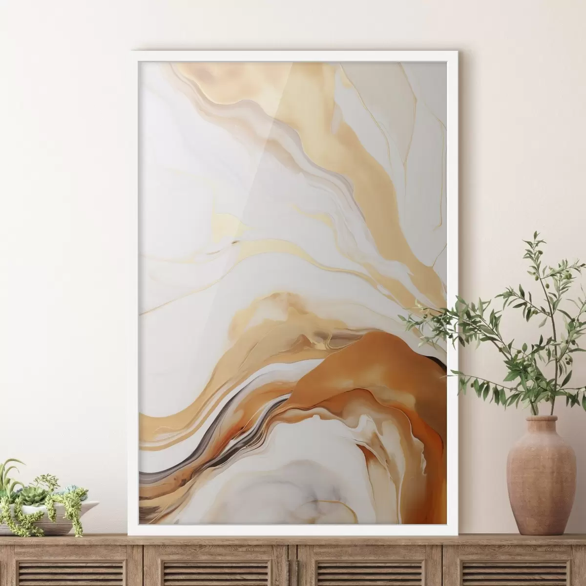 Affiche Imitation de peinture abstraite avec des formes fluides dans des tons de blanc, orange et marron, minimaliste Non f45938